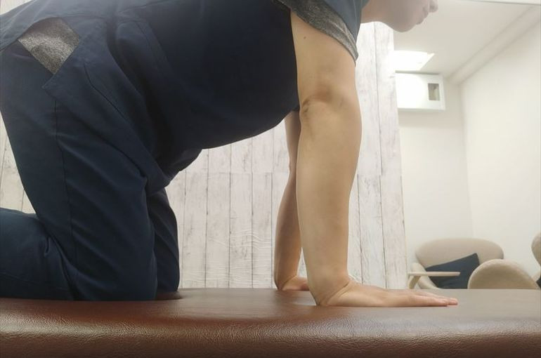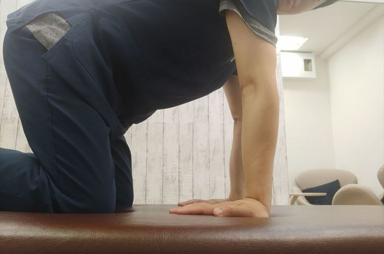 ①まず床に四つん這いの
