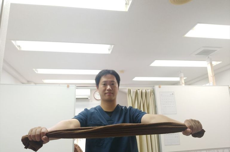 初めは長いタオルから