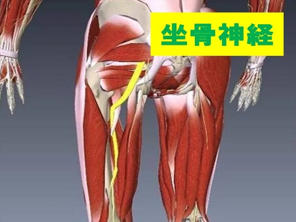 梨状筋と呼ばれるお尻の筋肉の下に坐骨神経があります。